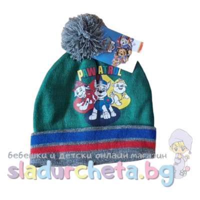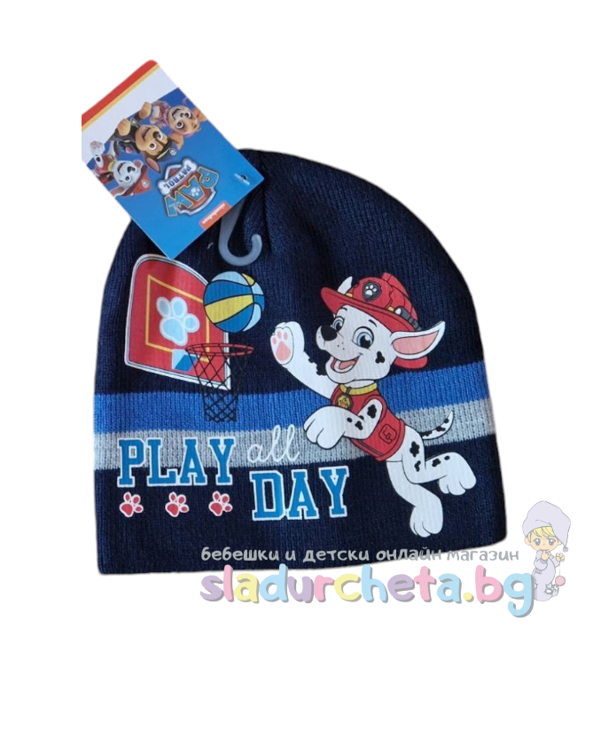Шапката е в тъмносин цвят с цветна апликация на Пес Патрул;