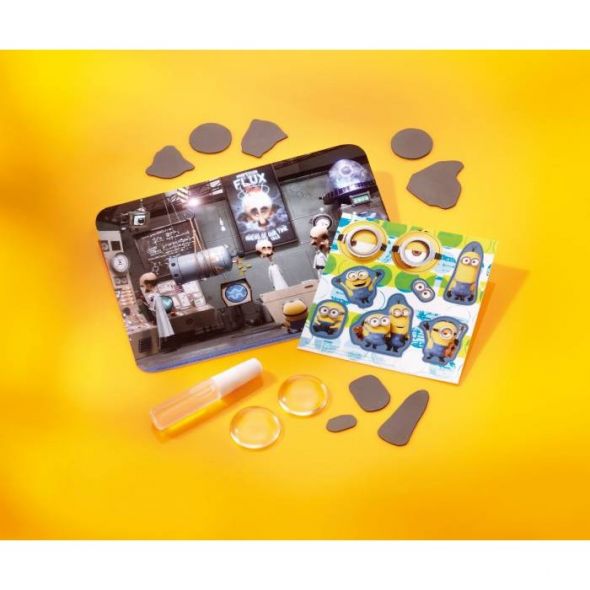 В металното куфарче има лист с предварително изрязани магнити, стикери, с които да се декорират и прозрачни триизмерни капачета, с които да се придаде „стъклен“ ефект на готовите магнити;