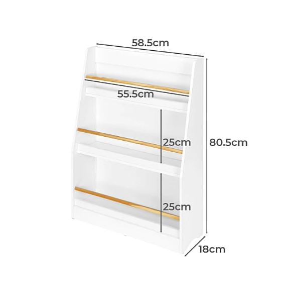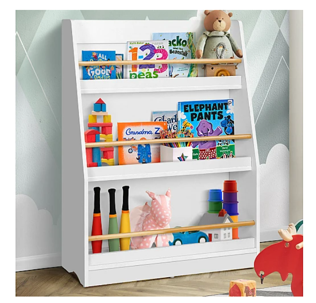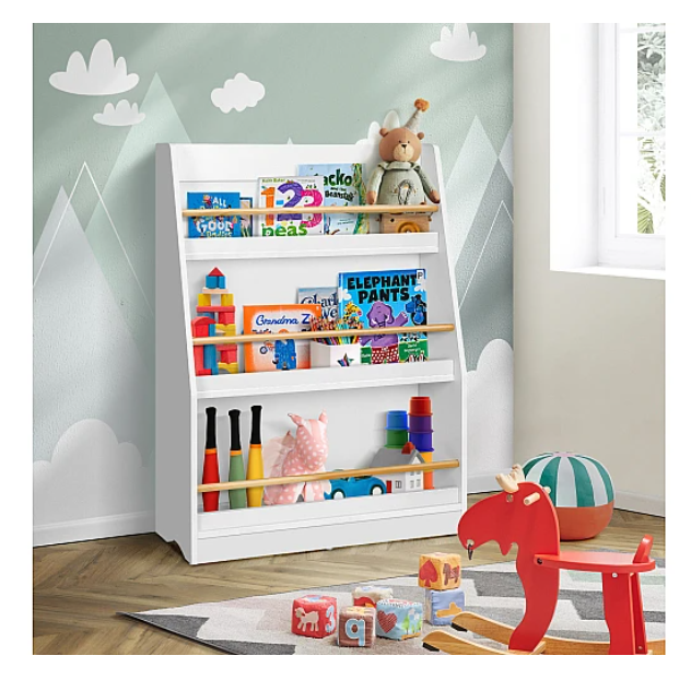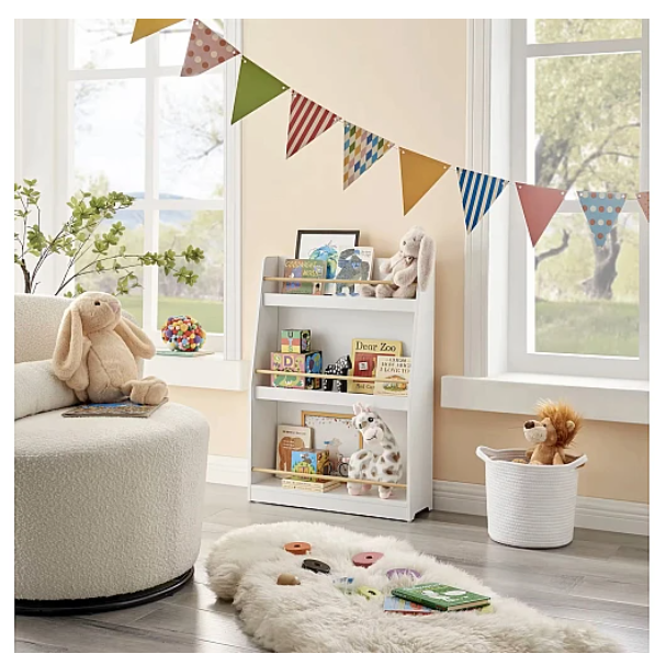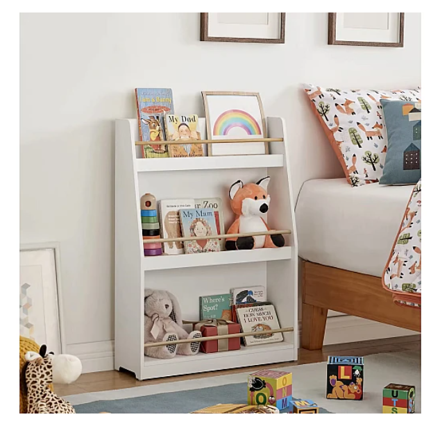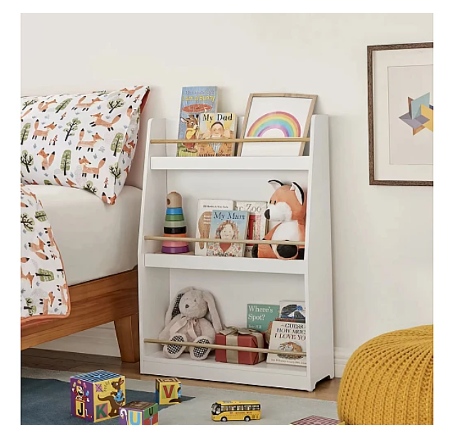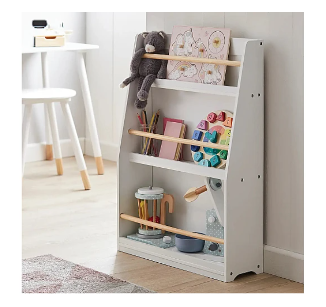 • С трите си нива за съхранение, предлага достатъчно място за организиране на книжки, играчки и учебни материали;