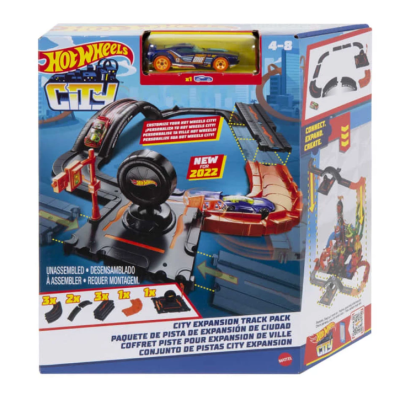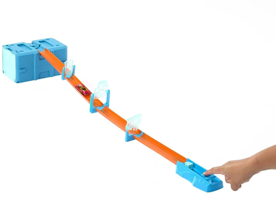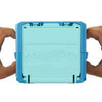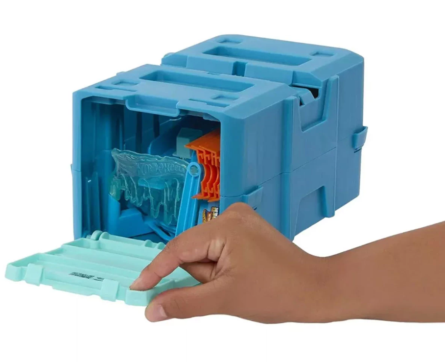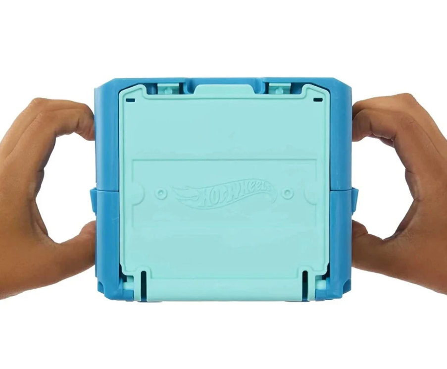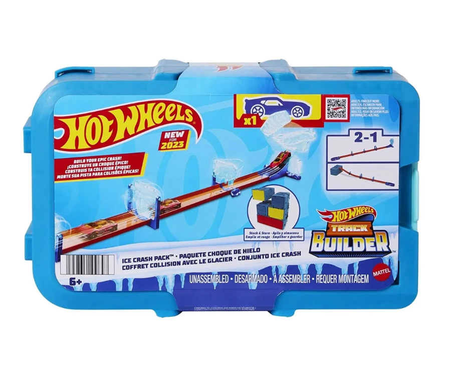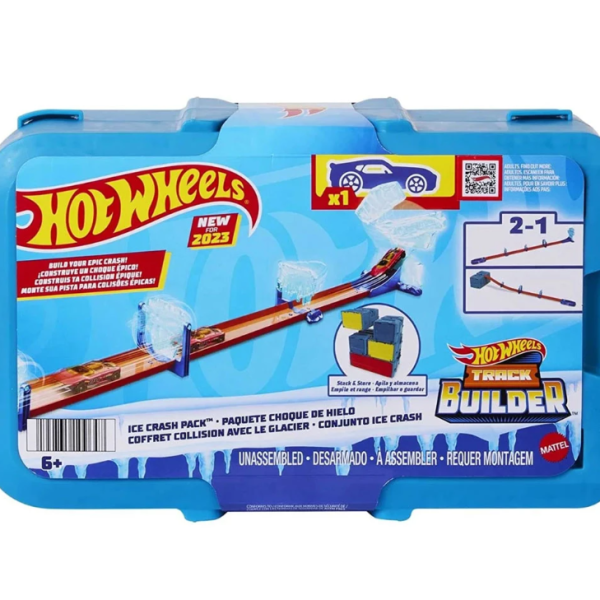 Всички части се побират в иновативната модулна кутия за съхранение, която може да се използва и като част от конфигурации на писти и да се подрежда удобно в други кутии на Track Builder;