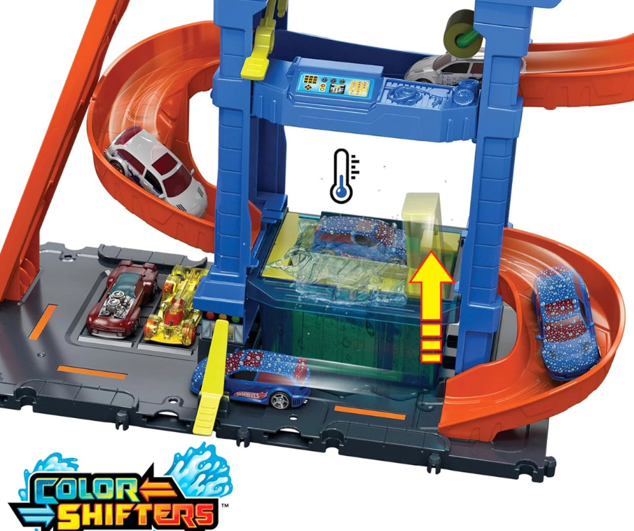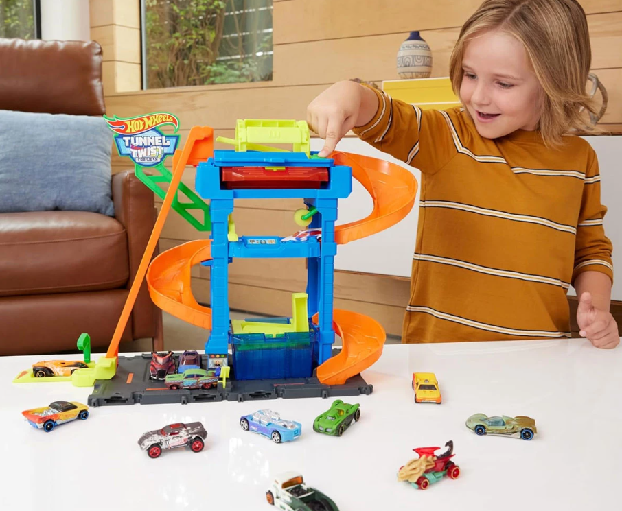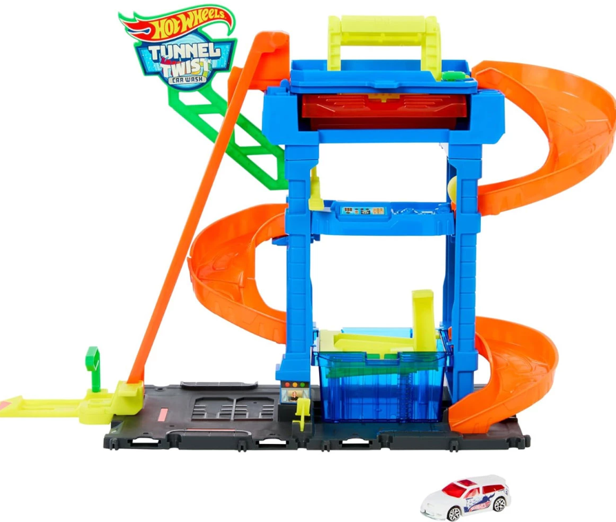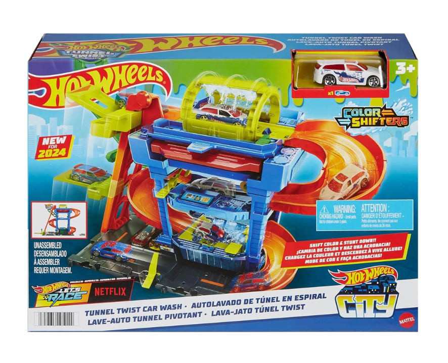 Насладете се на променящото цветовете забавление на автомивката Hot Wheels City Tunnel Twist;